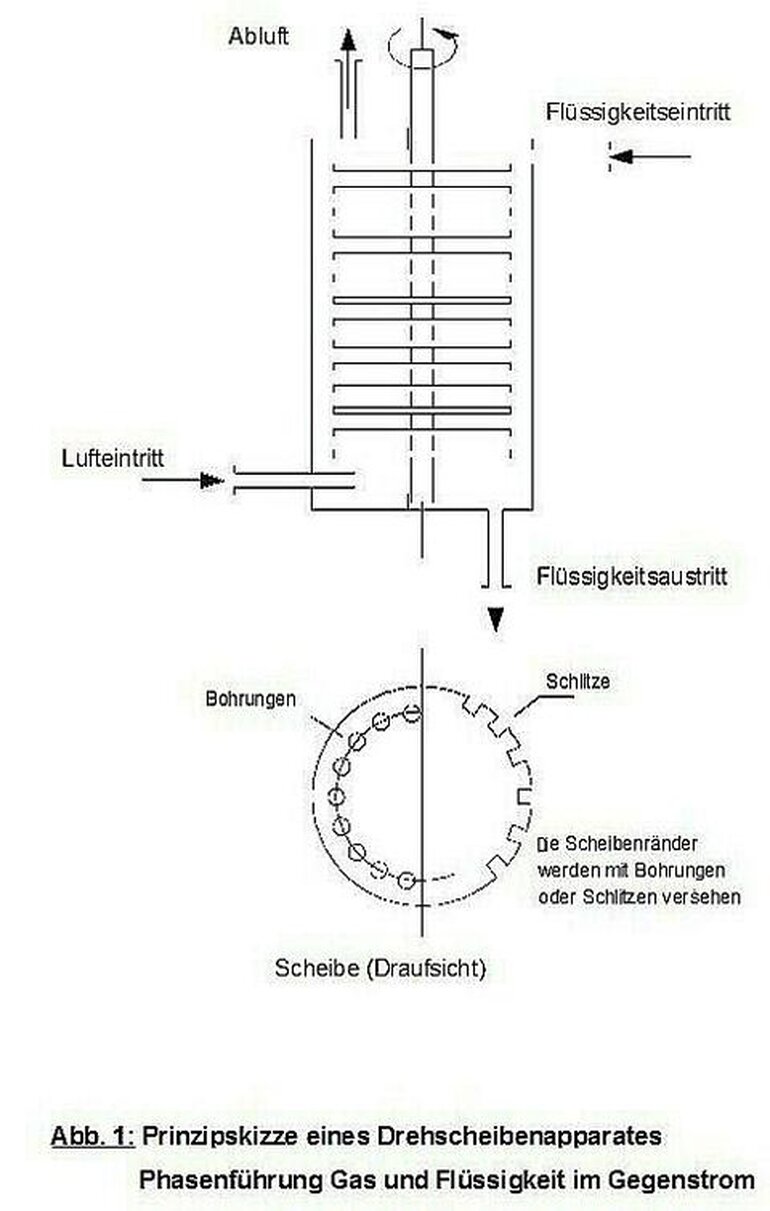 Drehscheibenapparate sind auch für die Begasung von Flüssigkeiten geeignet. Versuche zeigen aber, dass die erwartete feine Dispersion von Gasblasen an den Scheibenrändern unterbleibt