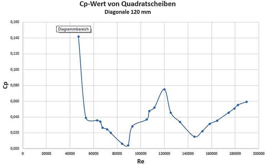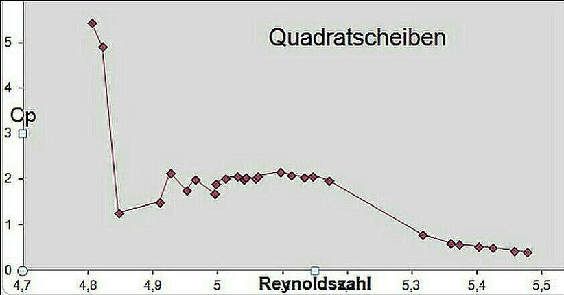 In einem Laborapparat mit Da=150mm quadratische Scheiben mit einer Diagonale von 120 mm erprobt. Die Ergebnisse Bild 10 sind die Cp-Werte für eine Scheibe.