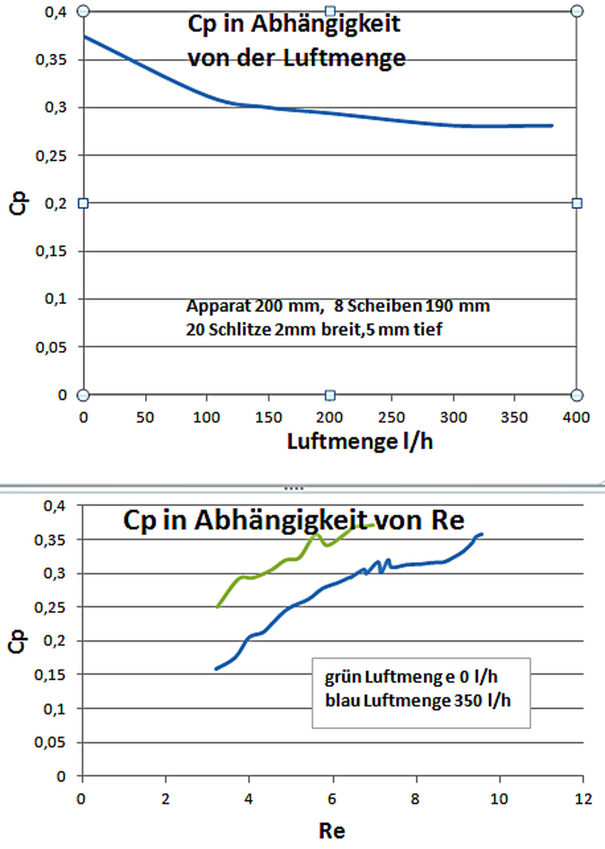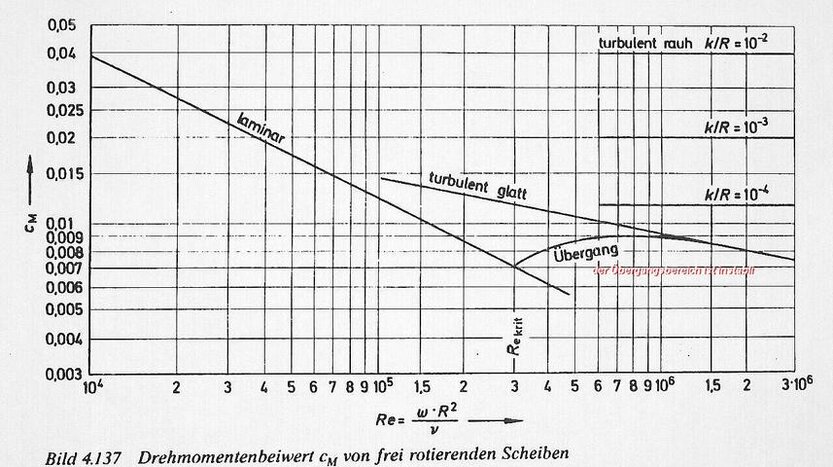 Für die Berechnung der Rührerleistung benötigt man den Reibungsbeiwert Cp der Scheiben.