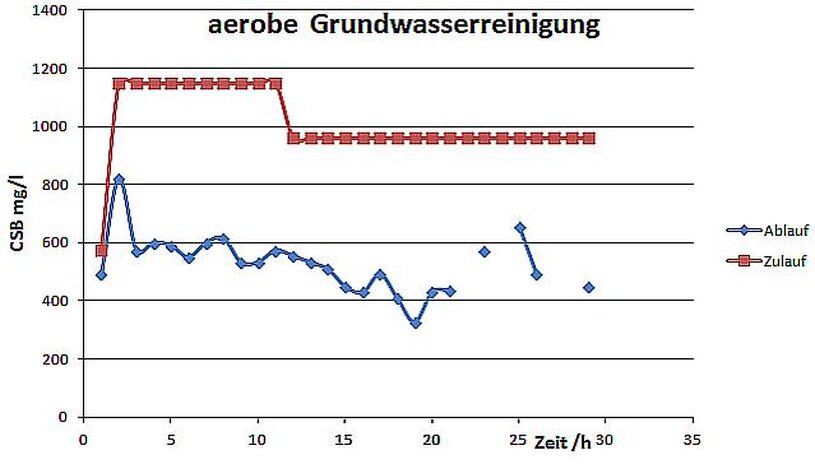 Mit auf einer Packung immobilisierten Bakterien konnte im kontinuierlichen Betrieb in einem Klärwerk Abbauleistungen von 4000 mg CSB/l*h erreicht werden. Die Verweilzeit des Abwassers betrug nur 14 min. Diese hohen Abbauleistungen sind auch bei Abwässern möglich, die zum Schäumen neigen (z.B. Zentrat).