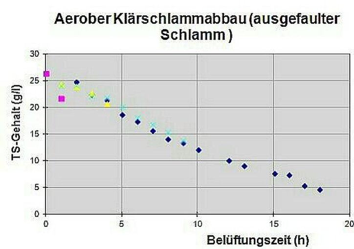 - ein geringer Klärschlammabbau (weniger als 15%)