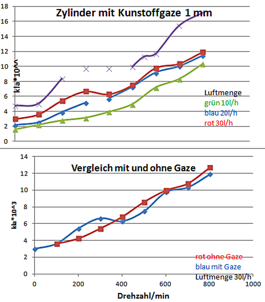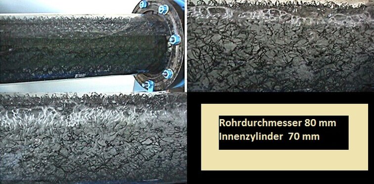 Bei diesen Versuchen wurde unterhalb des Innenzylinders eine perforierte Scheibe (70 mm) angebracht, die aber keine Verbesserung der Luftdispersion brachte.