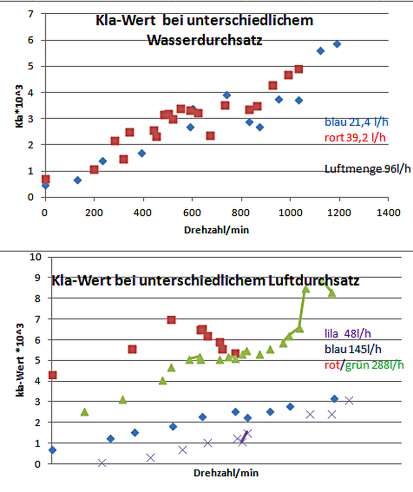 Bild 7 Einfluss der Luftmenge und des Wasserdurchsatzes auf den kla-Wert